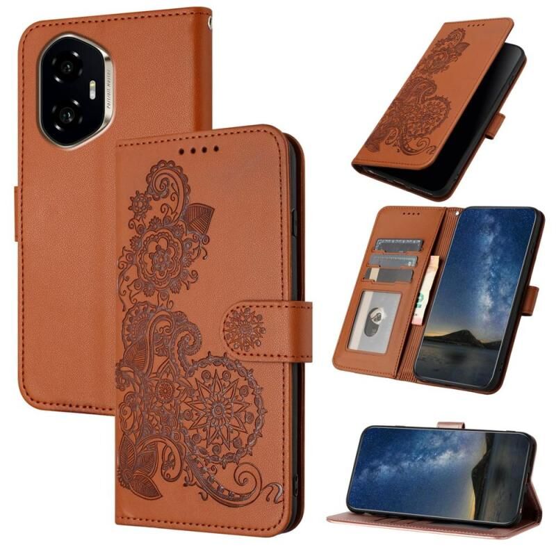For Honor 300 Datura Flower Embossed Flip Leather Phone Case(Brown)