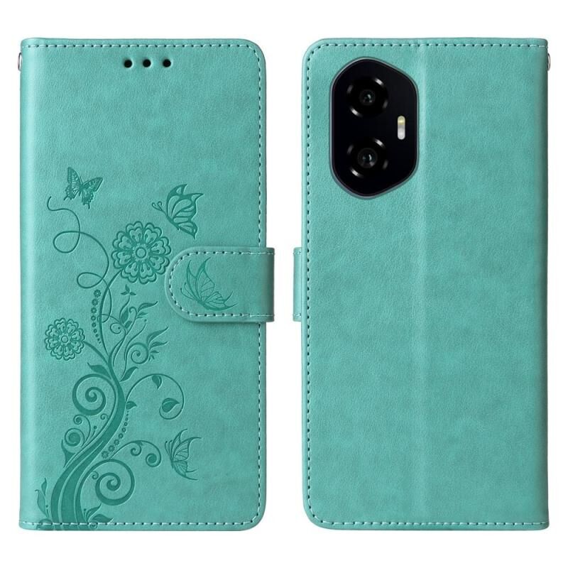 For Honor 300 Embossed Butterfly Flowers Leather Phone Case(Green)