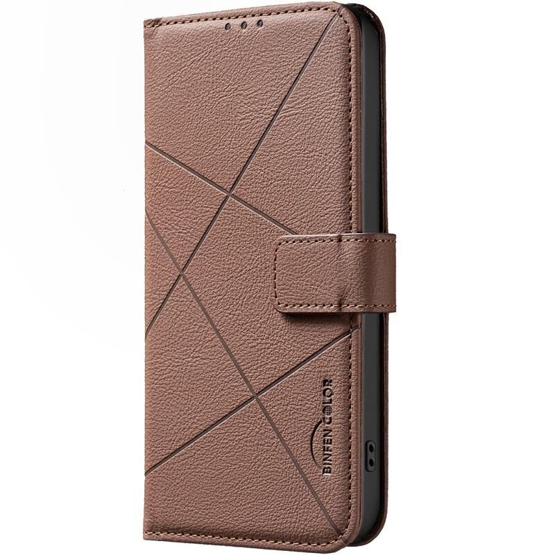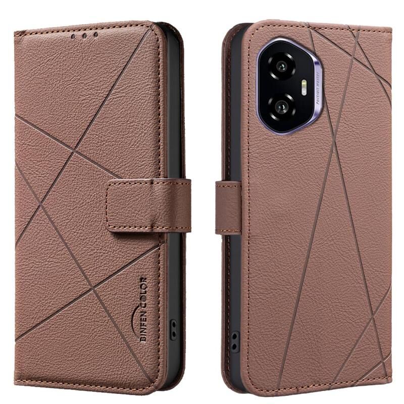 Θήκη τηλεφώνου Honor 300 από δέρμα με γεωμετρικό σχέδιο και τεχνολογία RFID (Καφέ)