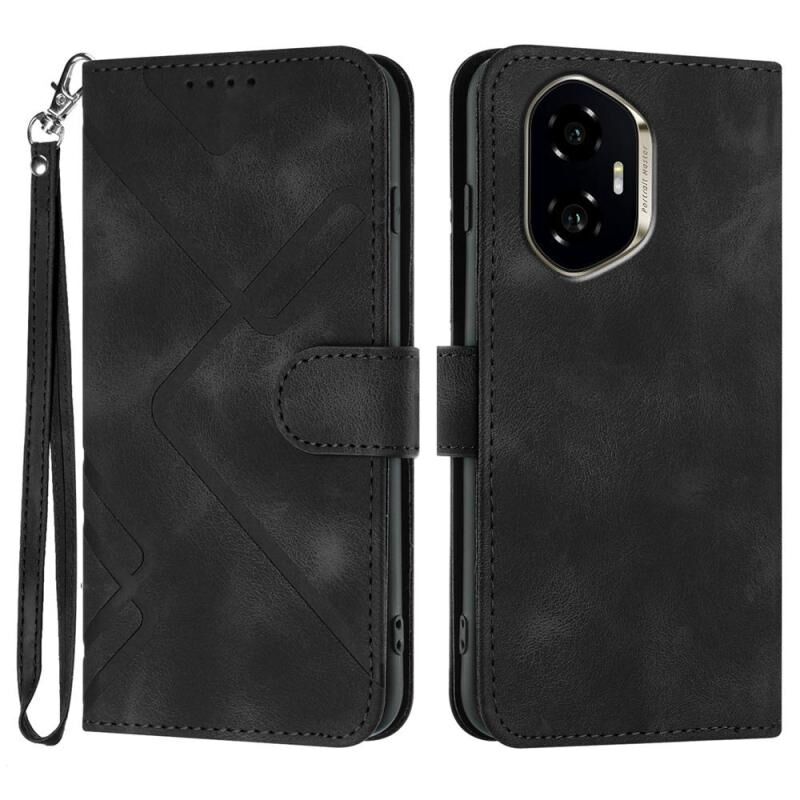 Θήκη τηλεφώνου Honor 300 με υφή δέρματος και σχέδιο 300 γραμμών (Κόκκινη)