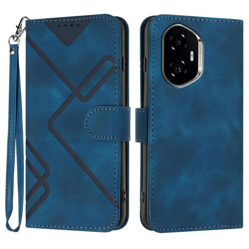 For Honor 300 Line Pattern Skin Feel Leather Phone Case(Royal Blue)