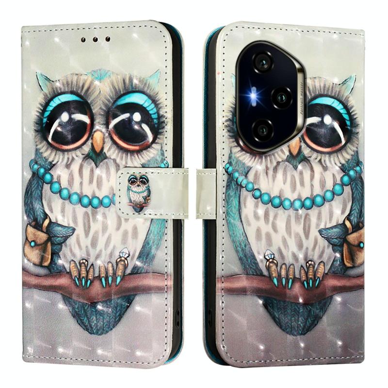 For Honor 300 Pro / 300 Ultra 3D Painting Horizontal Flip Leather Phone Case(Grey Owl)