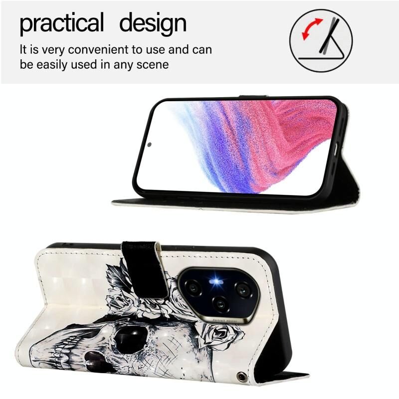 Θήκη τηλεφώνου από δέρμα με οριζόντια αναδίπλωση και τρισδιάστατη ζωγραφική για Honor 300 Pro / 300 Ultra (Κρανίο)