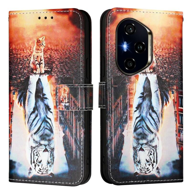 Θήκη τηλεφώνου από δέρμα με απλή ύφανση και έγχρωμο σχέδιο (γάτες και τίγρεις) για Honor 300 Pro / 300 Ultra. (Κόκκινο)