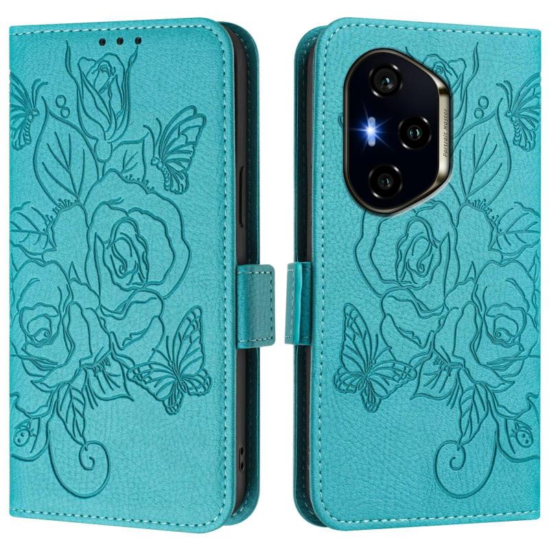 For Honor 300 Pro 5G / 300 Ultra 5G Embossed Rose RFID Anti-theft Leather Phone Case(Light Blue)