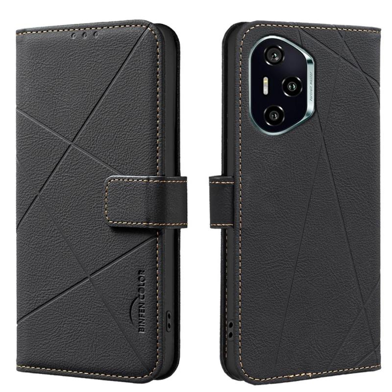 For Honor 300 Pro 5G / 300 Ultra 5G Geometric Pattern RFID Leather Phone Case(Black)