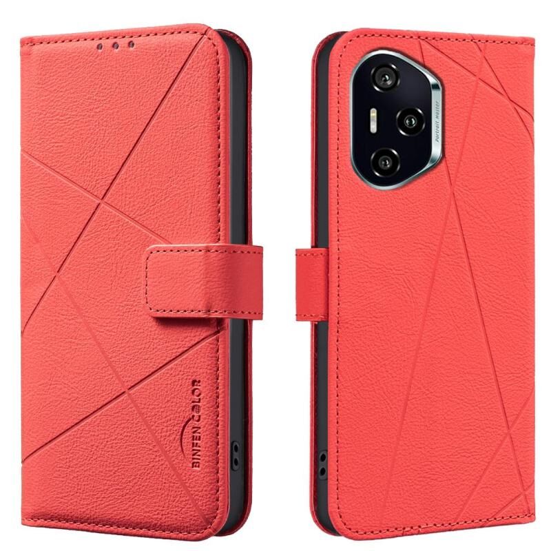 Θήκη τηλεφώνου από δέρμα με σχέδιο γεωμετρικό και προστασία RFID για Honor 300 Pro 5G / 300 Ultra 5G (Κόκκινο)