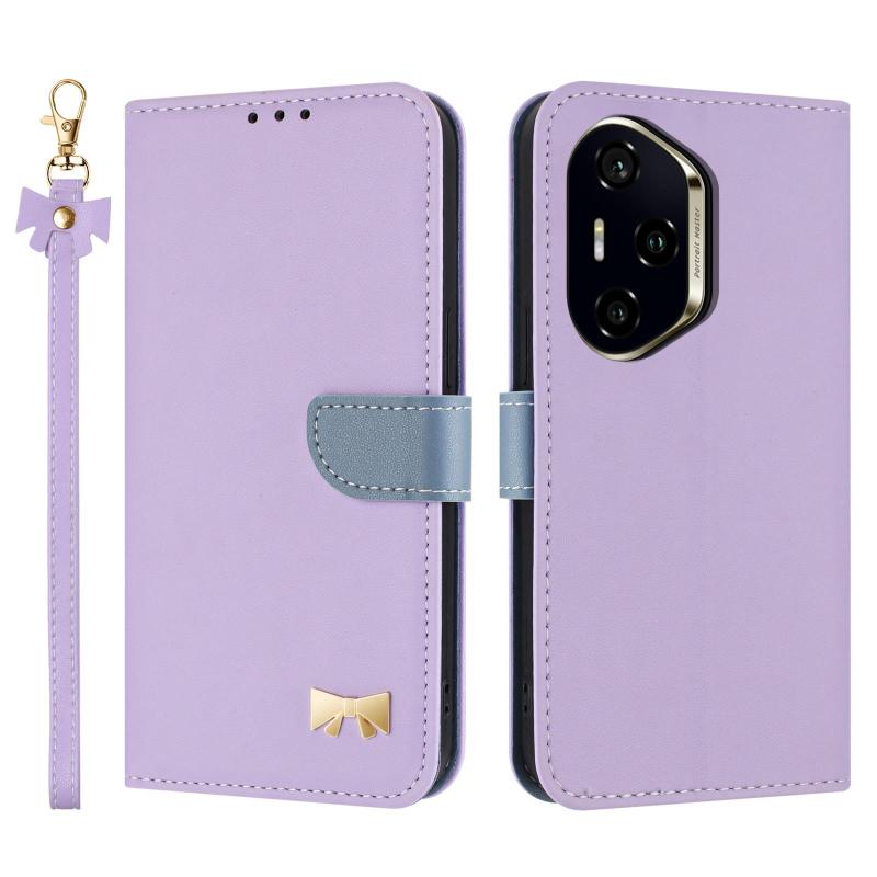 For Honor 300 Pro 5G / 300 Ultra 5G Metal Bow Leather Phone Case with Hand Strap(Purple)