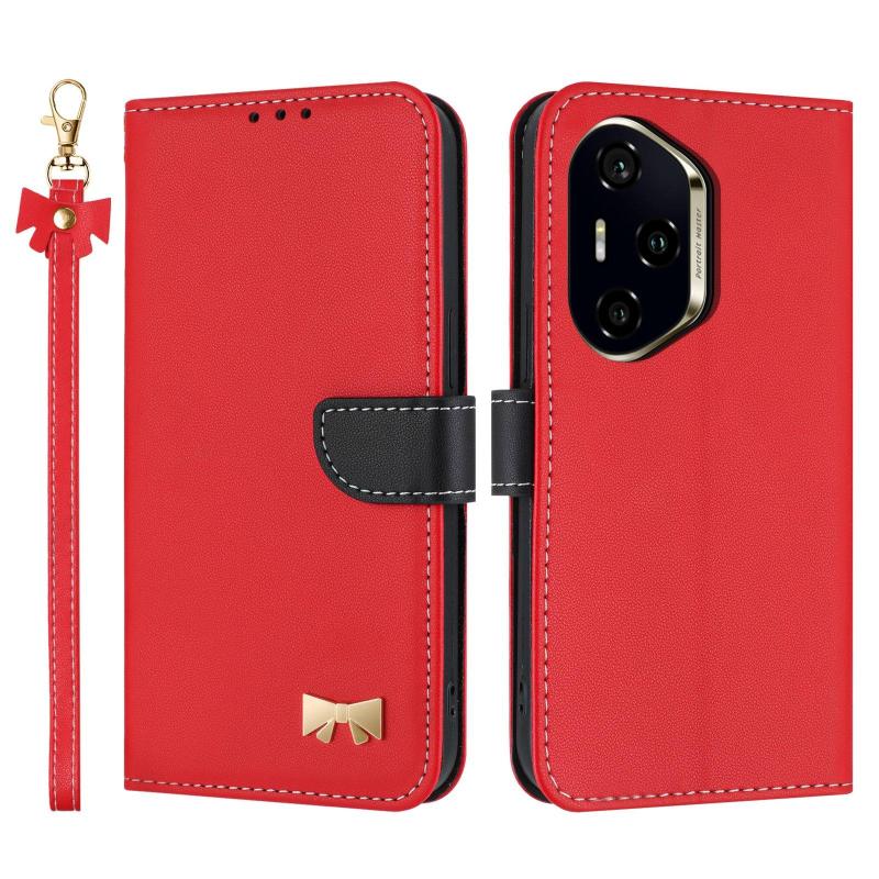 For Honor 300 Pro 5G / 300 Ultra 5G Metal Bow Leather Phone Case with Hand Strap(Red)