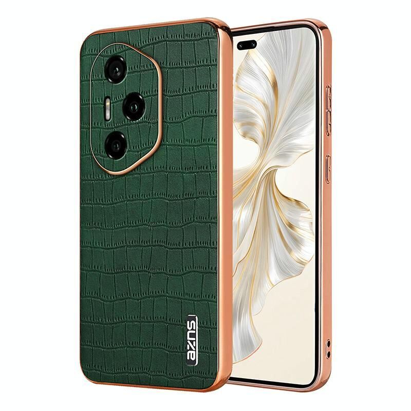Θήκη κινητού τηλεφώνου Honor 300 Pro AZNS με ηλεκτρολυτικό πλαίσιο, υφή κροκόδειλου, πλήρης κάλυψη (Μαύρο) (AZNS)