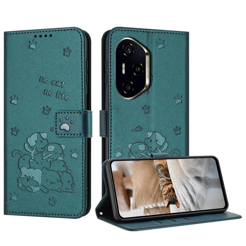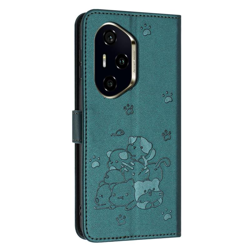 Θήκη τηλεφώνου από δέρμα με ανάγλυφο γατάκι για Honor 300 Pro με κορδόνι (Μωβ)