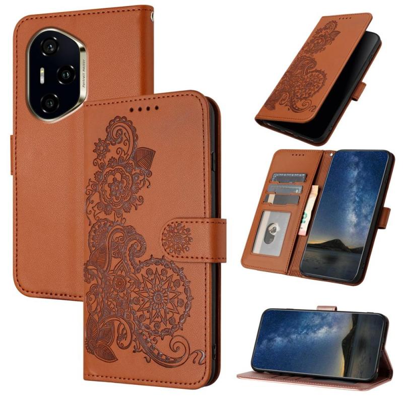 For Honor 300 Pro / Honor 300 Ultra Datura Flower Embossed Flip Leather Phone Case(Brown)