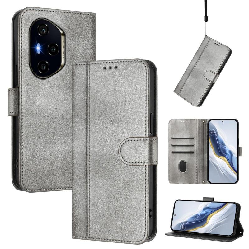 For Honor 300 Pro / Honor 300 Ultra Line Splicing Buckle Retro Leather Phone Case(Grey)