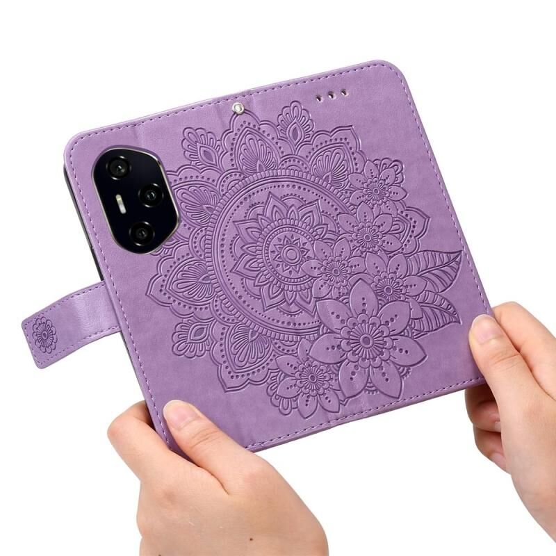 Θήκη τηλεφώνου Honor 300 Pro με δέρμα ανάγλυφο επτά πέταλα λουλουδιών (Ανοιχτό Μωβ)