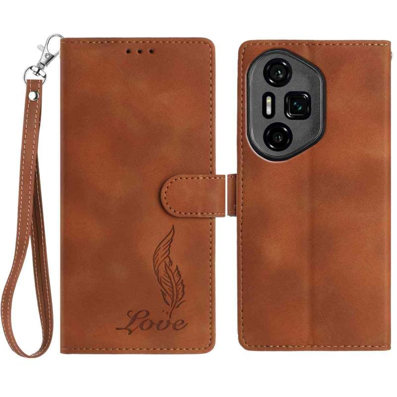 For Honor 300 Pro Skin Feel Embossed Feather Leather Phone Case(Brown)
