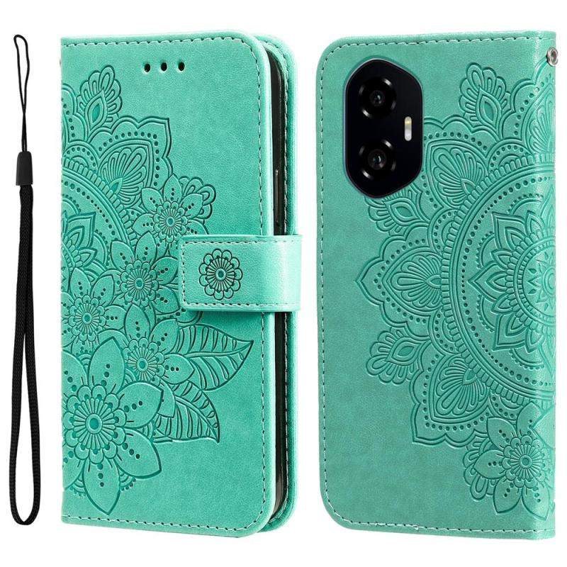 For Honor 300 Seven-petal Flowers Embossing Leather Phone Case(Green)