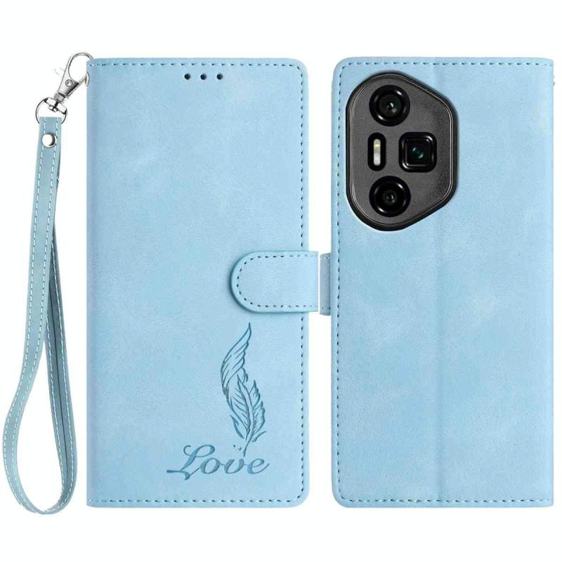 For Honor 300 Skin Feel Embossed Feather Leather Phone Case(Light Blue)