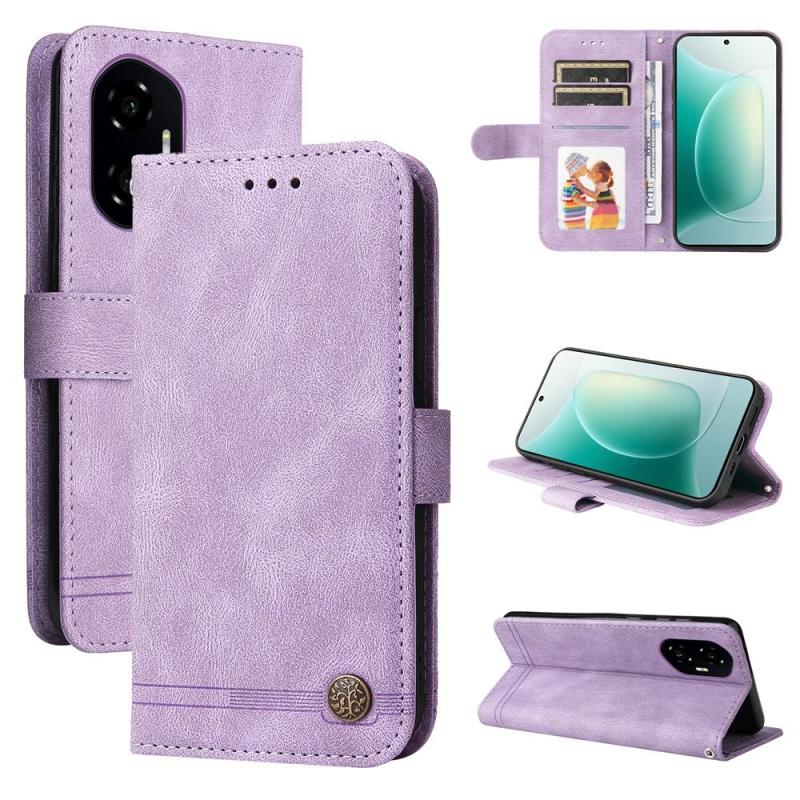 Θήκη τηλεφώνου Honor 300 με αίσθηση δέρματος, σχέδιο δέντρου, μεταλλικό κουμπί (Μωβ)