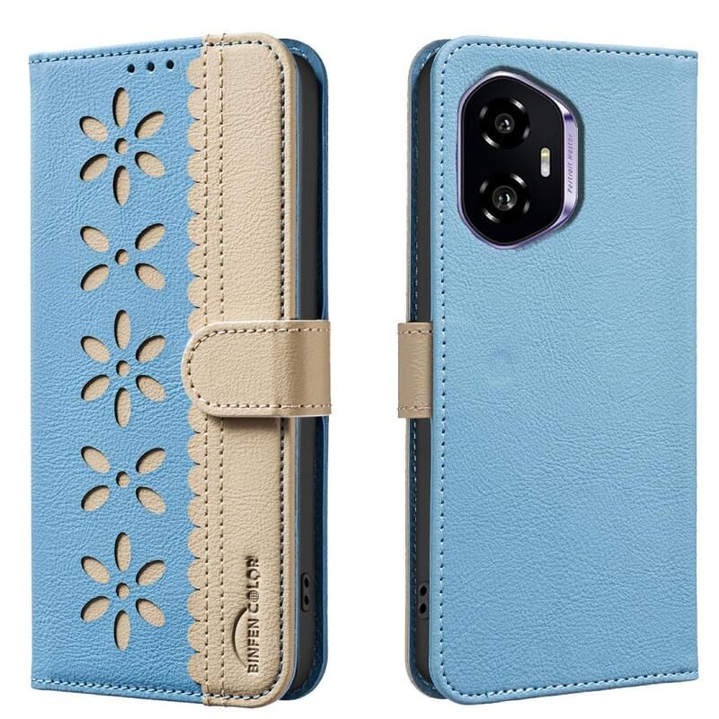 Θήκη τηλεφώνου από δέρμα RFID με κούφιο σχέδιο λουλουδιού, ραφτό και χρωματιστό, για Honor 300 (Μαύρο)