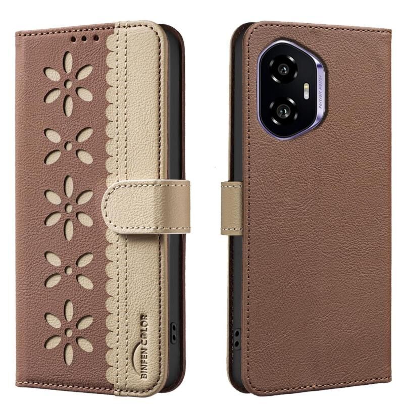 Θήκη τηλεφώνου από δέρμα RFID με κούφιο σχέδιο λουλουδιού, ραφτό και χρωματιστό, για Honor 300 (Μαύρο)