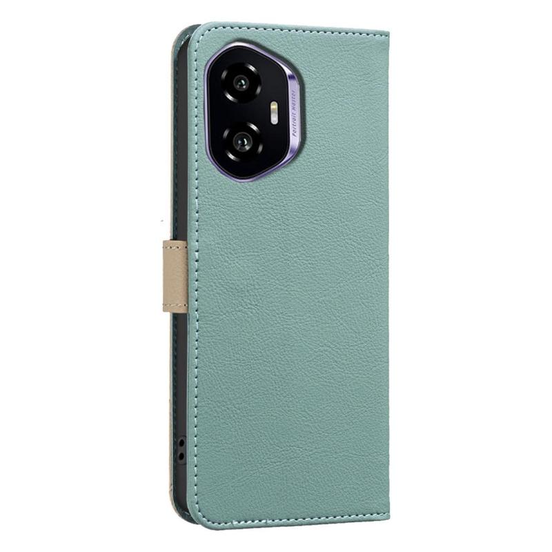 For Honor 300 Splicing Color Hollow Flower Pattern RFID Leather Phone Case(Green)