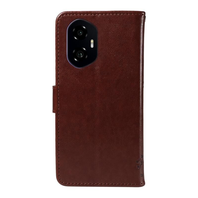 Θήκη τηλεφώνου από δέρμα με σχέδιο ανάγλυφου δέντρου και γάτας για Honor 300 (Καφέ)