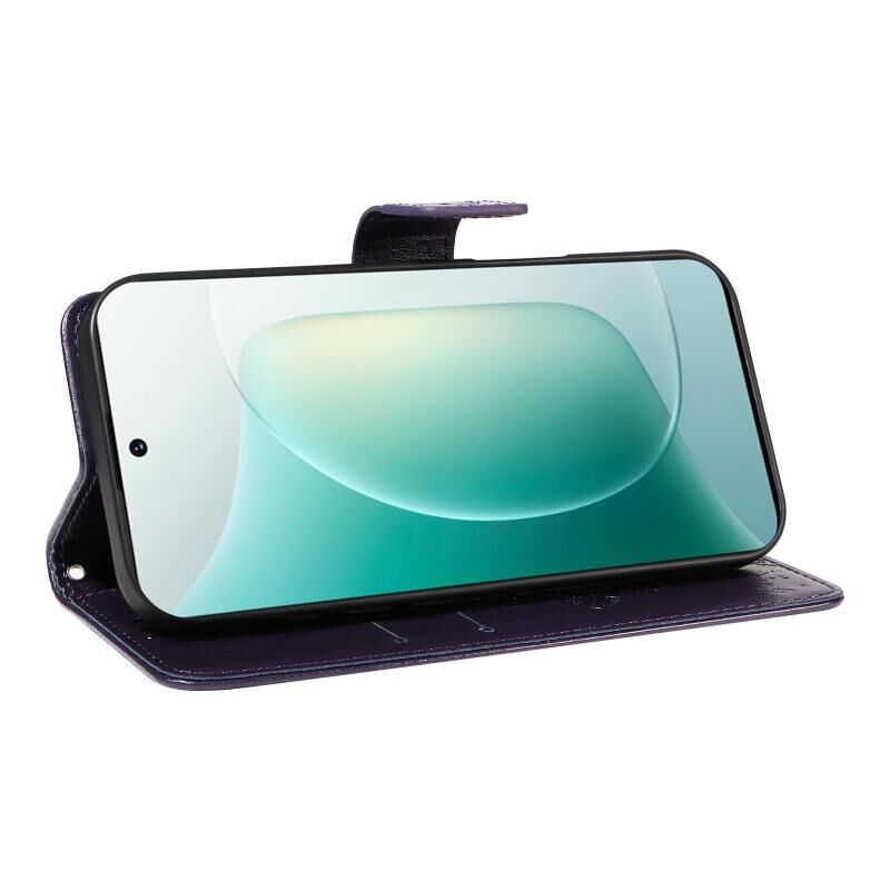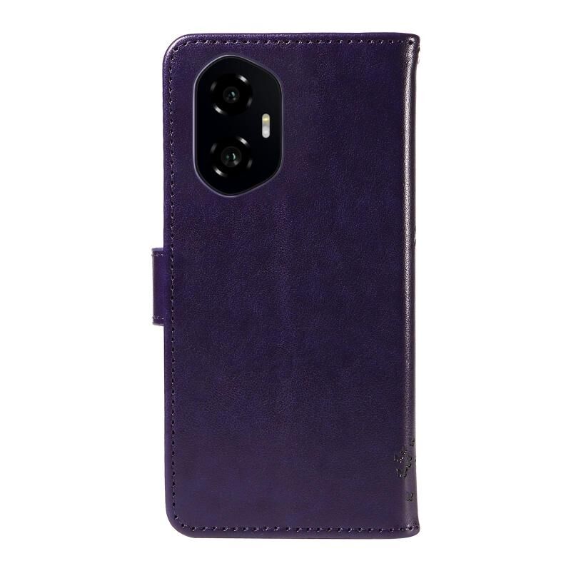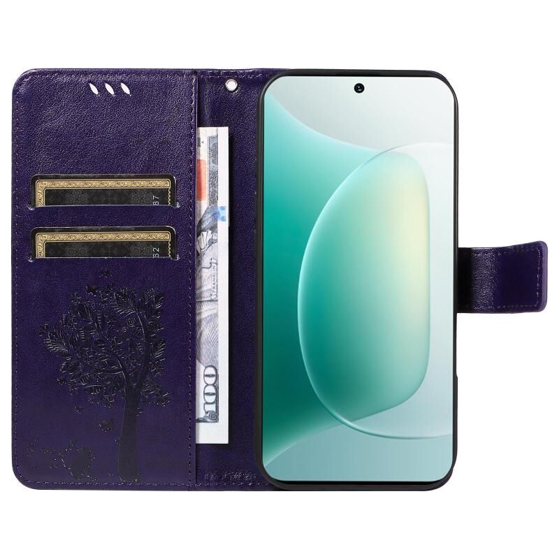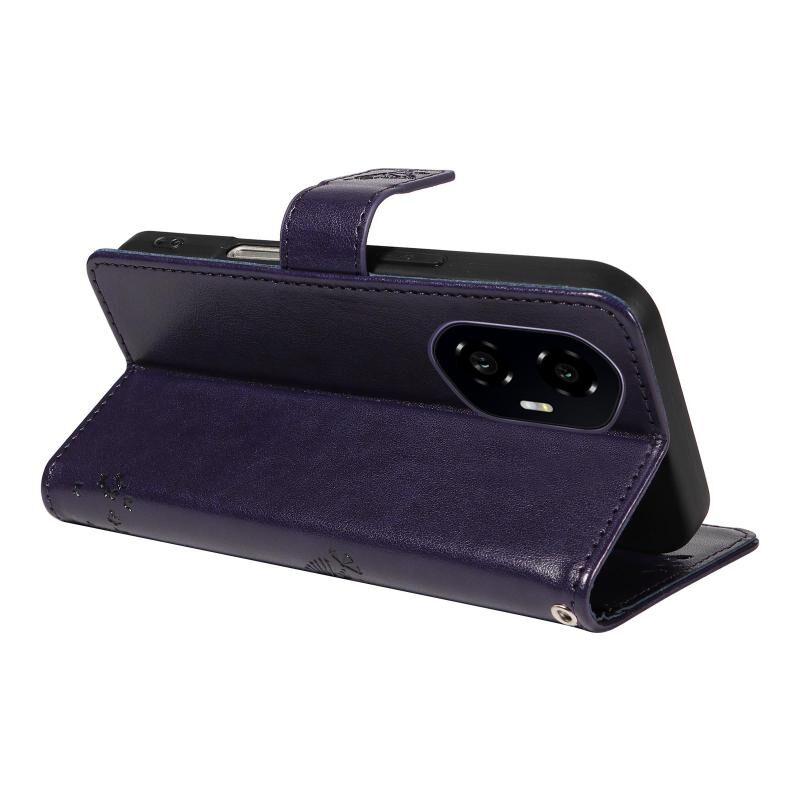 Θήκη τηλεφώνου από δέρμα με σχέδιο ανάγλυφου δέντρου και γάτας, τύπου flip, για Honor 300 (Μωβ)