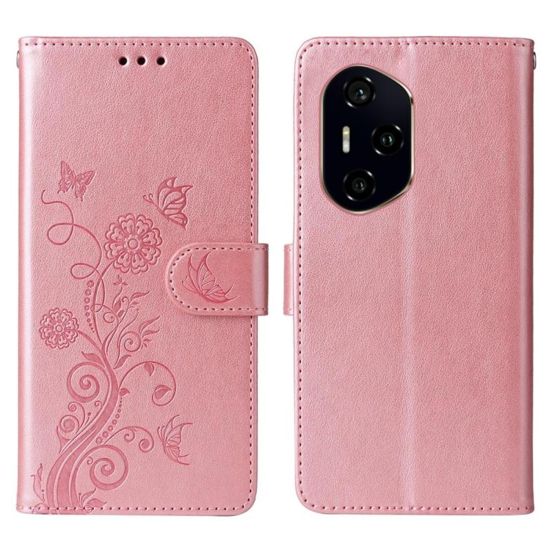 For Honor 300 Ultra Embossed Butterfly Flowers Leather Phone Case(Rose Gold)