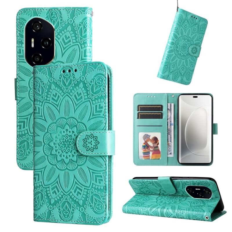 Θήκη τηλεφώνου Honor 300 Ultra με ανάγλυφο σχέδιο ηλίανθου από δέρμα (Κόκκινο)