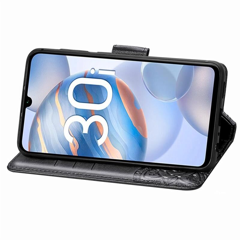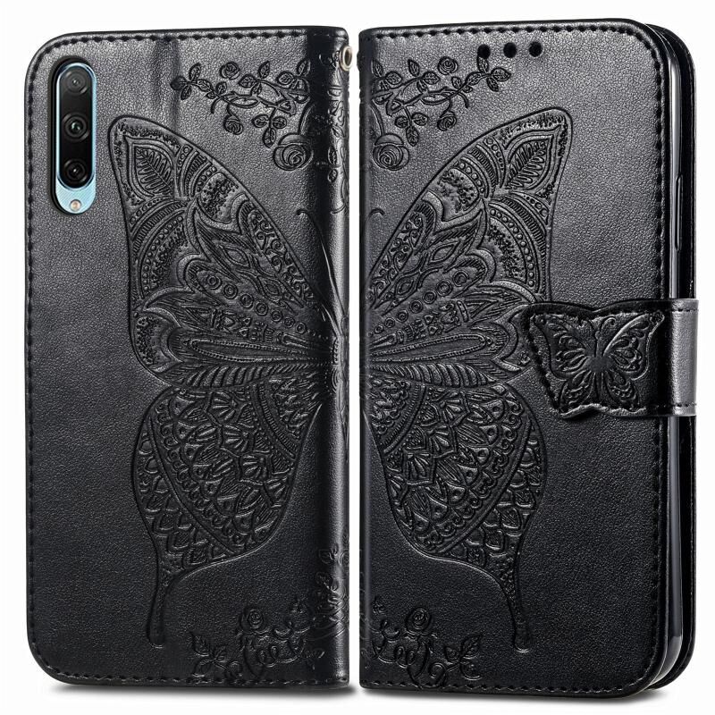 Για Honor 30i πεταλούδα αγάπη λουλούδι ανάγλυφο δέρμα τηλέφωνο υπόθεση (μαύρο)