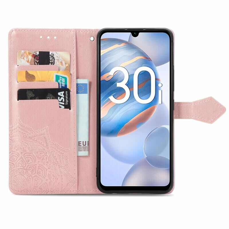 Για Honor 30i Mandala λουλούδι ανάγλυφο δερμάτινη θήκη τηλεφώνου (Rose Gold)