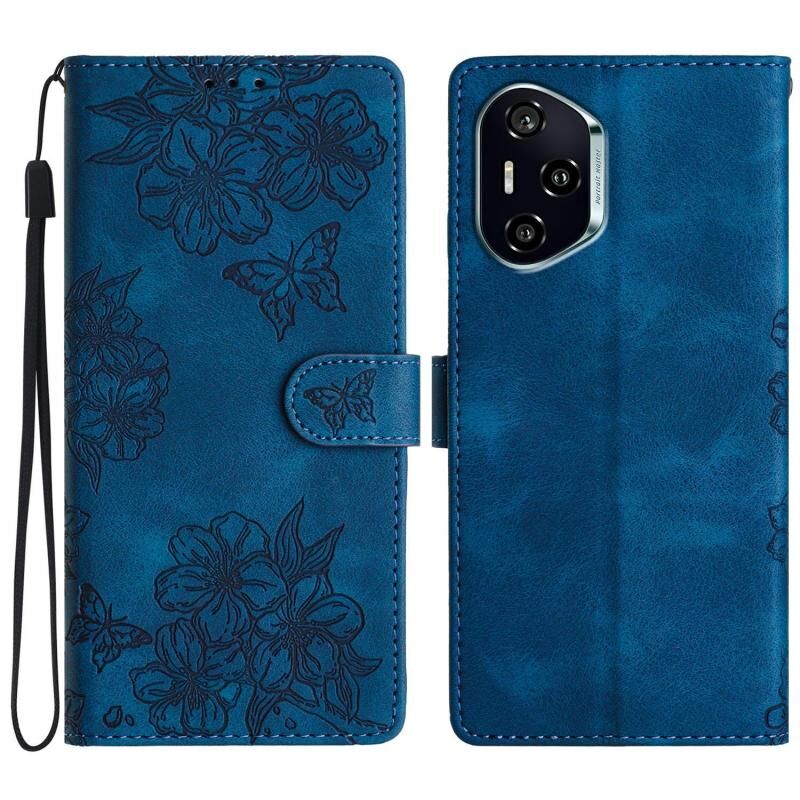 Θήκη τηλεφώνου Honor 400 Global 156.5mm με ανάγλυφο PU υλικό αίσθησης πεταλούδας άνθους κερασιάς (Κόκκινο)