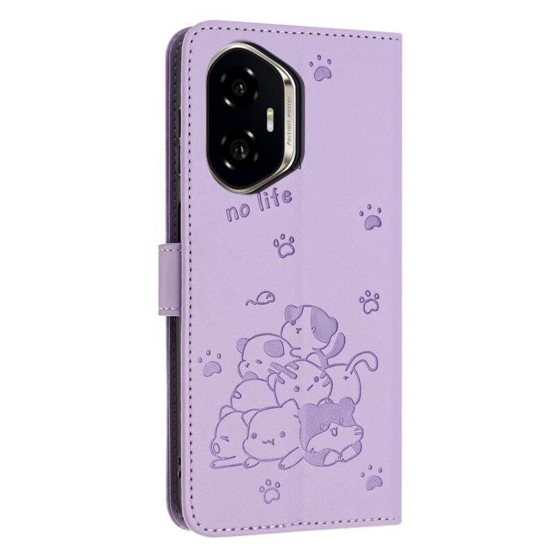 For Honor 400 Global 156.5mm Embossed Kitten Phone Leather Case with Lanyard(Purple)