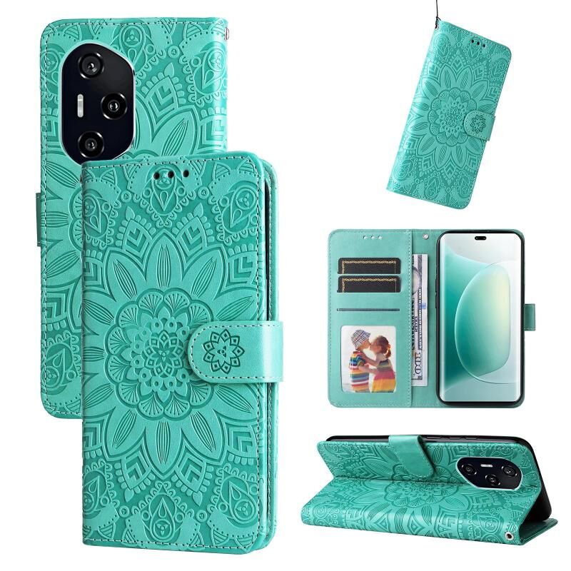 For Honor 400 Global 156.5mm Embossed Sunflower Leather Phone Case(Green)