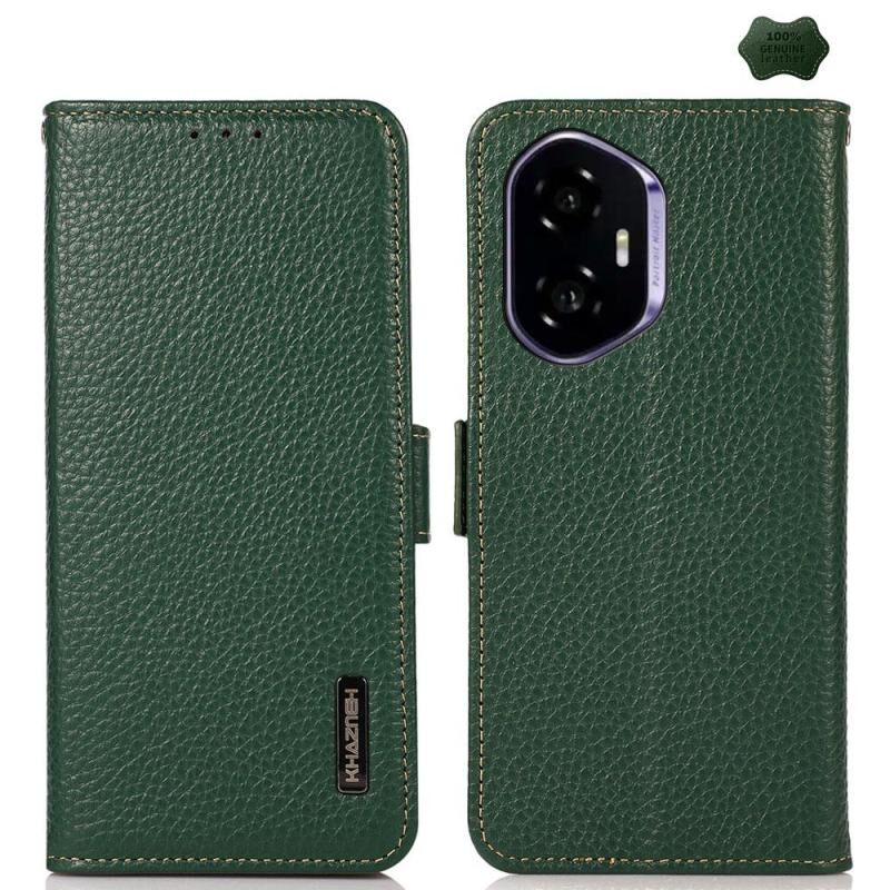 Θήκη τηλεφώνου Honor 400 Global 156.5mm KHAZNEH Μαγνητική πλαϊνή από γνήσιο δέρμα Litchi με προστασία RFID (Μαύρο)