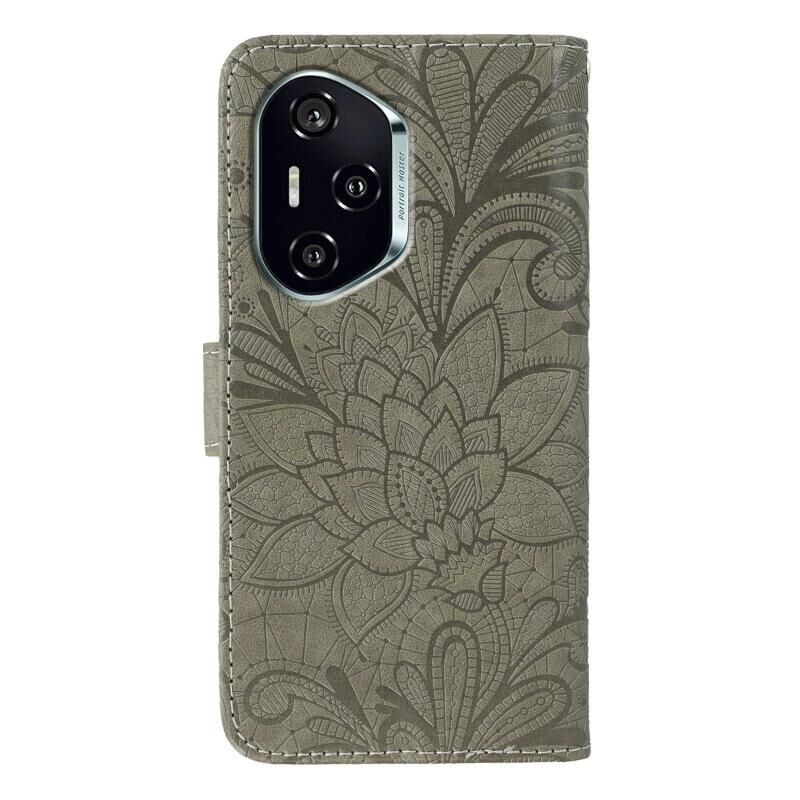 Θήκη τηλεφώνου από δέρμα με σχέδιο λουλουδιών σε δαντέλα και ανάγλυφο, για Honor 400 Global 156.5mm (Γκρι)
