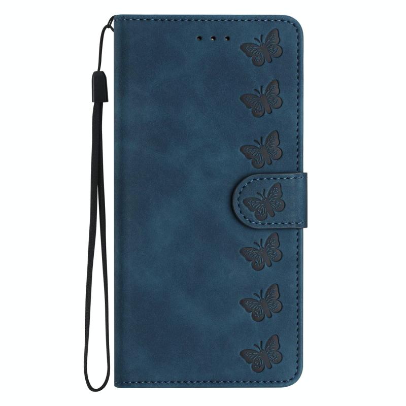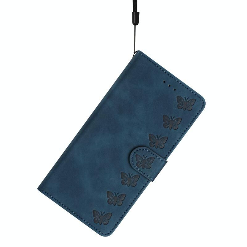 Θήκη τηλεφώνου Honor 400 Global 156.5mm Επτά Πεταλούδες, δερμάτινη με ανάγλυφο σχέδιο (Μπλε)