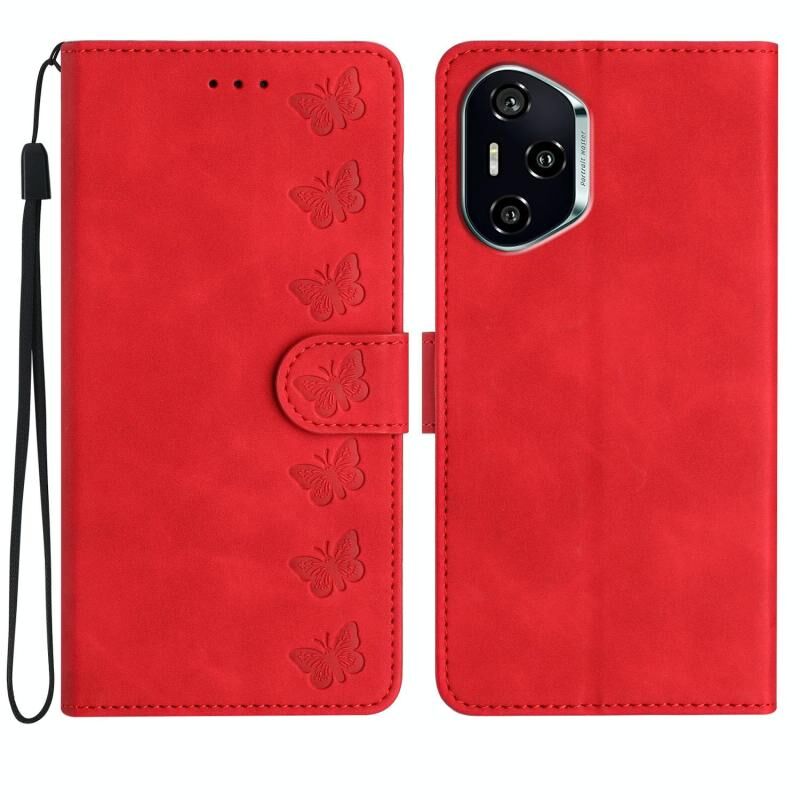 Θήκη τηλεφώνου Honor 400 Global 156.5mm Επτά Πεταλούδες, δερμάτινη με ανάγλυφο σχέδιο (Κόκκινο)