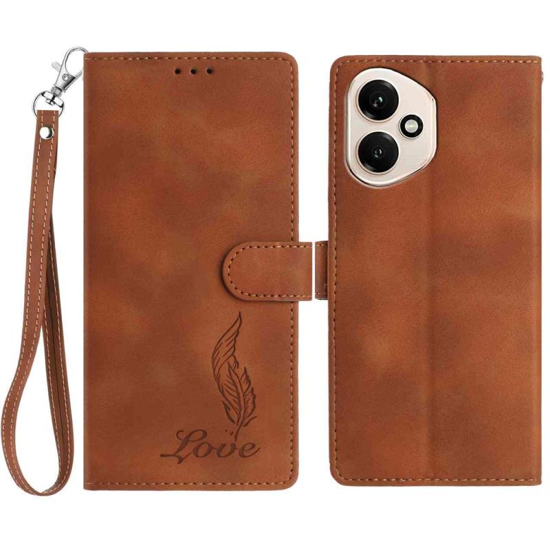 For Honor 400 Global 156.5mm Skin Feel Embossed Feather Leather Phone Case(Brown)