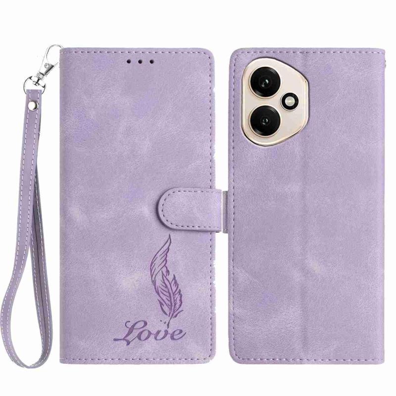 For Honor 400 Global 156.5mm Skin Feel Embossed Feather Leather Phone Case(Purple)