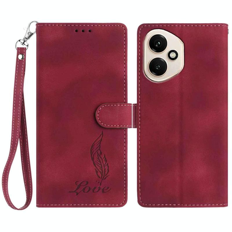 For Honor 400 Global 156.5mm Skin Feel Embossed Feather Leather Phone Case(Red)