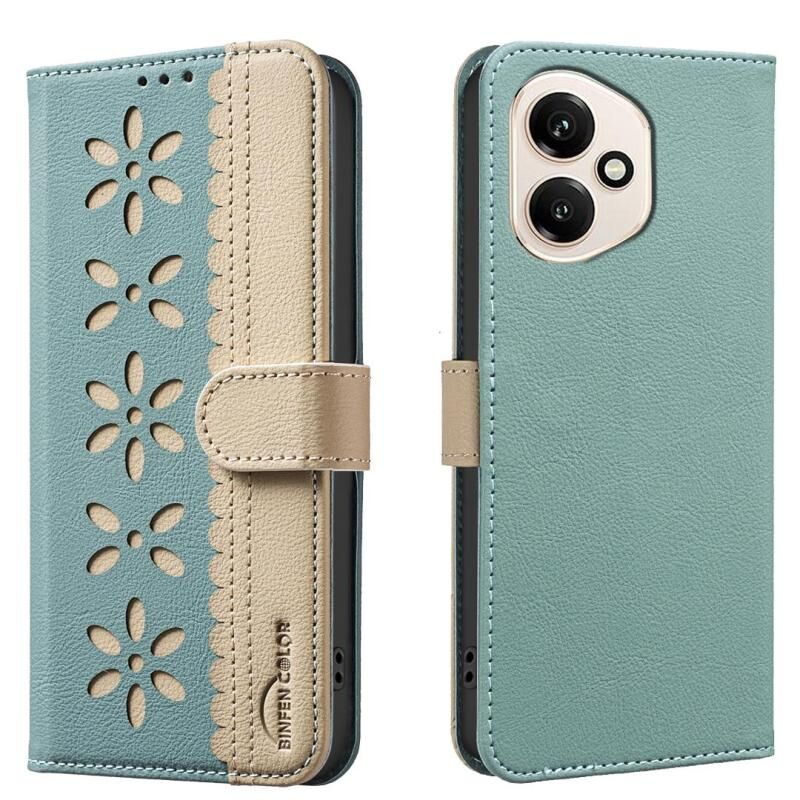 For Honor 400 Global 156.5mm Splicing Color Hollow Flower Pattern RFID Leather Phone Case(Green)