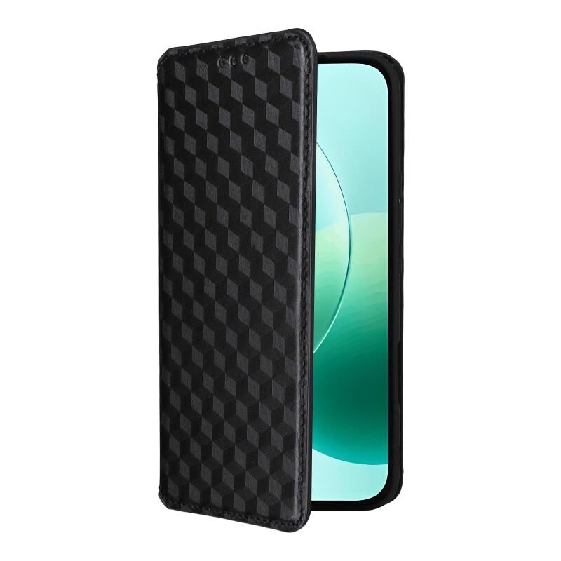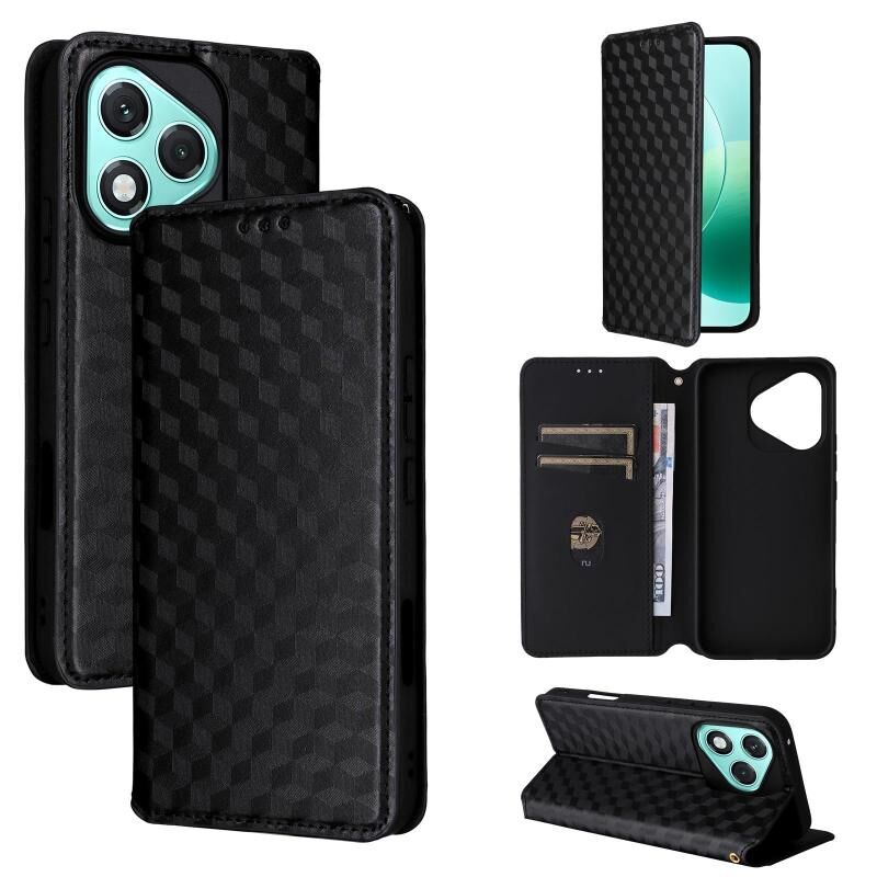 Θήκη τηλεφώνου δερμάτινη αναδιπλούμενη με υφή Cubic Grid για Honor 400 Lite 5G (Μαύρο)