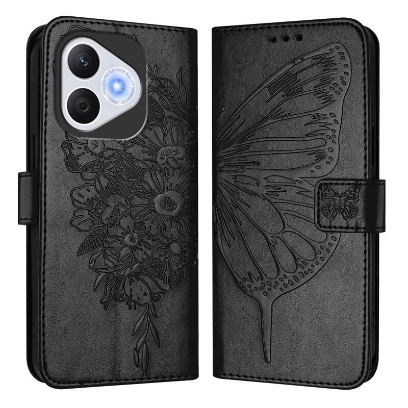 Θήκη τηλεφώνου Honor 400 Lite με ανάγλυφο σχέδιο πεταλούδας από δέρμα (Γκρι)