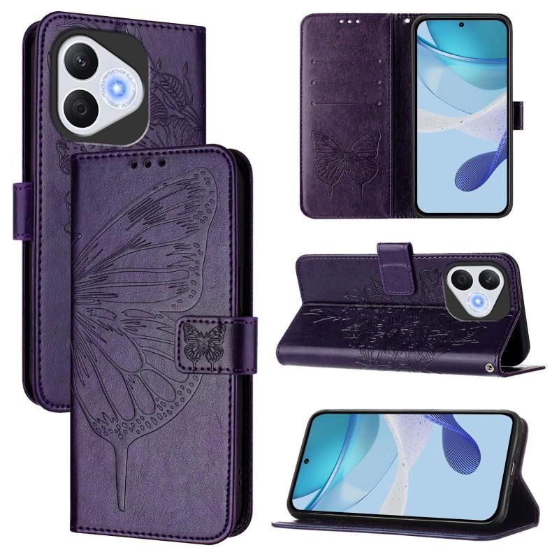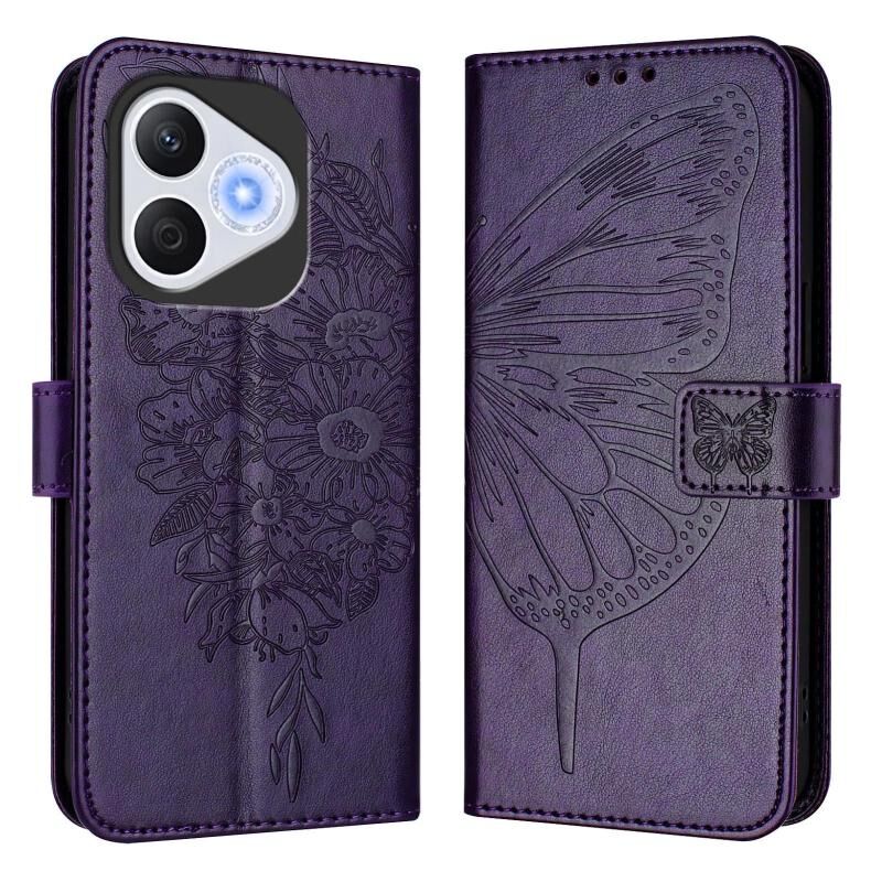 Θήκη τηλεφώνου Honor 400 Lite με ανάγλυφο σχέδιο πεταλούδας από δέρμα (Γκρι)