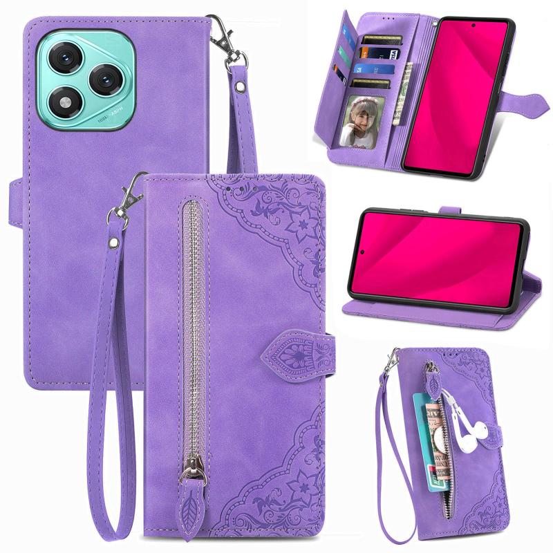 For Honor 400 Lite Embossed Flower Zipper Leather Phone Case(Purple)
