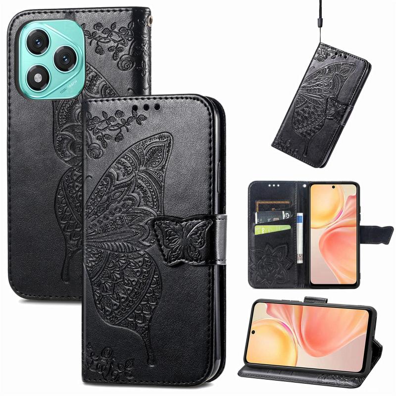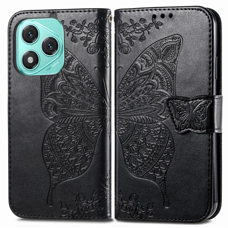 Θήκη τηλεφώνου από δέρμα με ανάγλυφο σχέδιο πεταλούδας και λουλουδιών για Honor 400 Lite Global Butterfly Love (Μπλε)