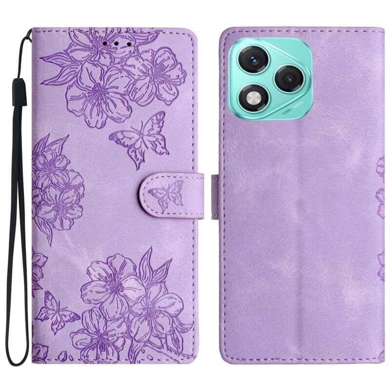 Θήκη τηλεφώνου Honor 400 Lite Global Cherry Blossom Butterfly Skin Feel Embossed PU (Κόκκινη)