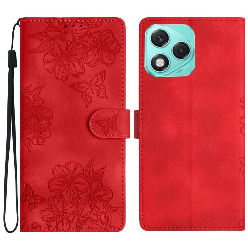 Θήκη τηλεφώνου Honor 400 Lite Global Cherry Blossom Butterfly Skin Feel Embossed PU (Κόκκινη)