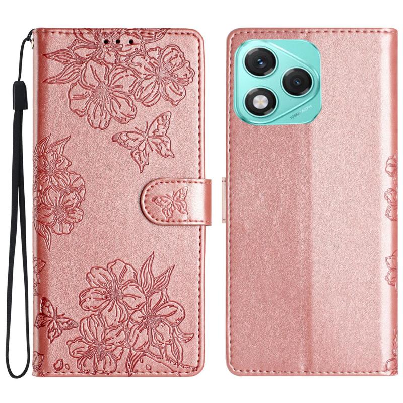 For Honor 400 Lite Global Cherry Blossom Butterfly Skin Feel Embossed PU Phone Case(Rose Gold)